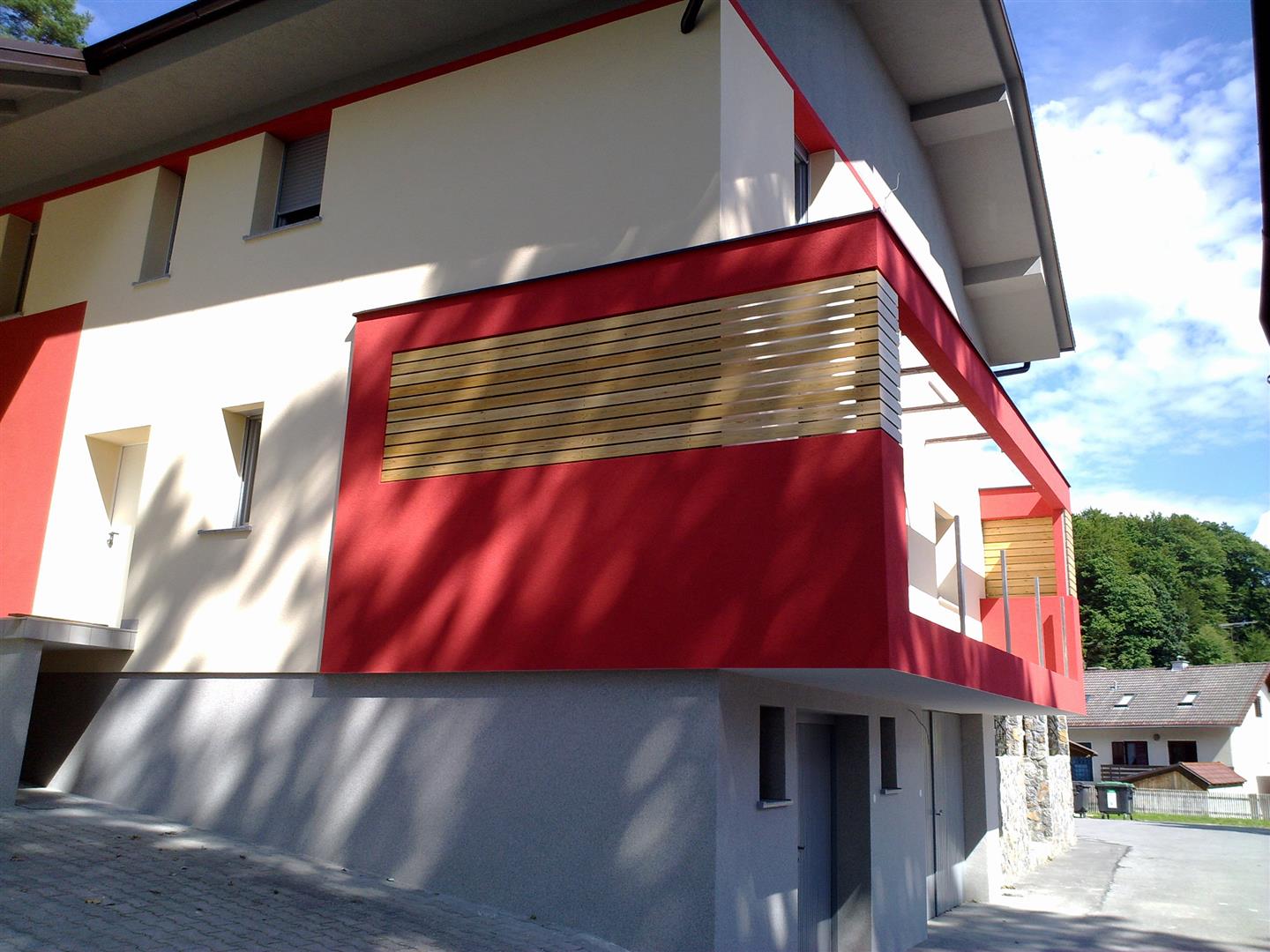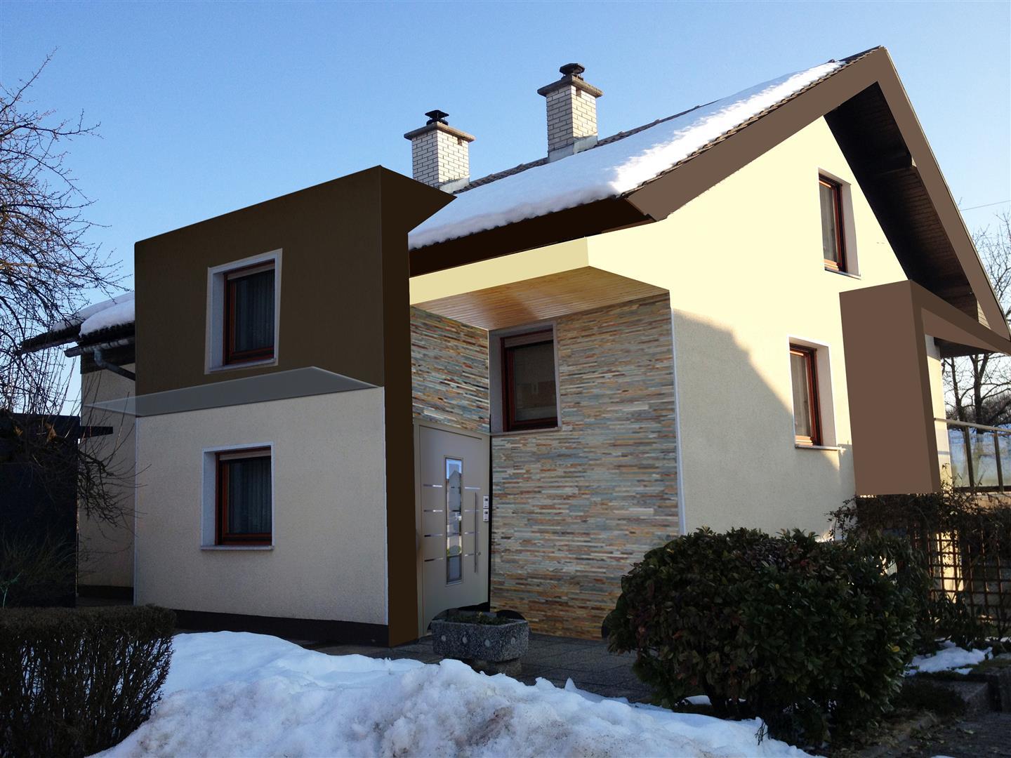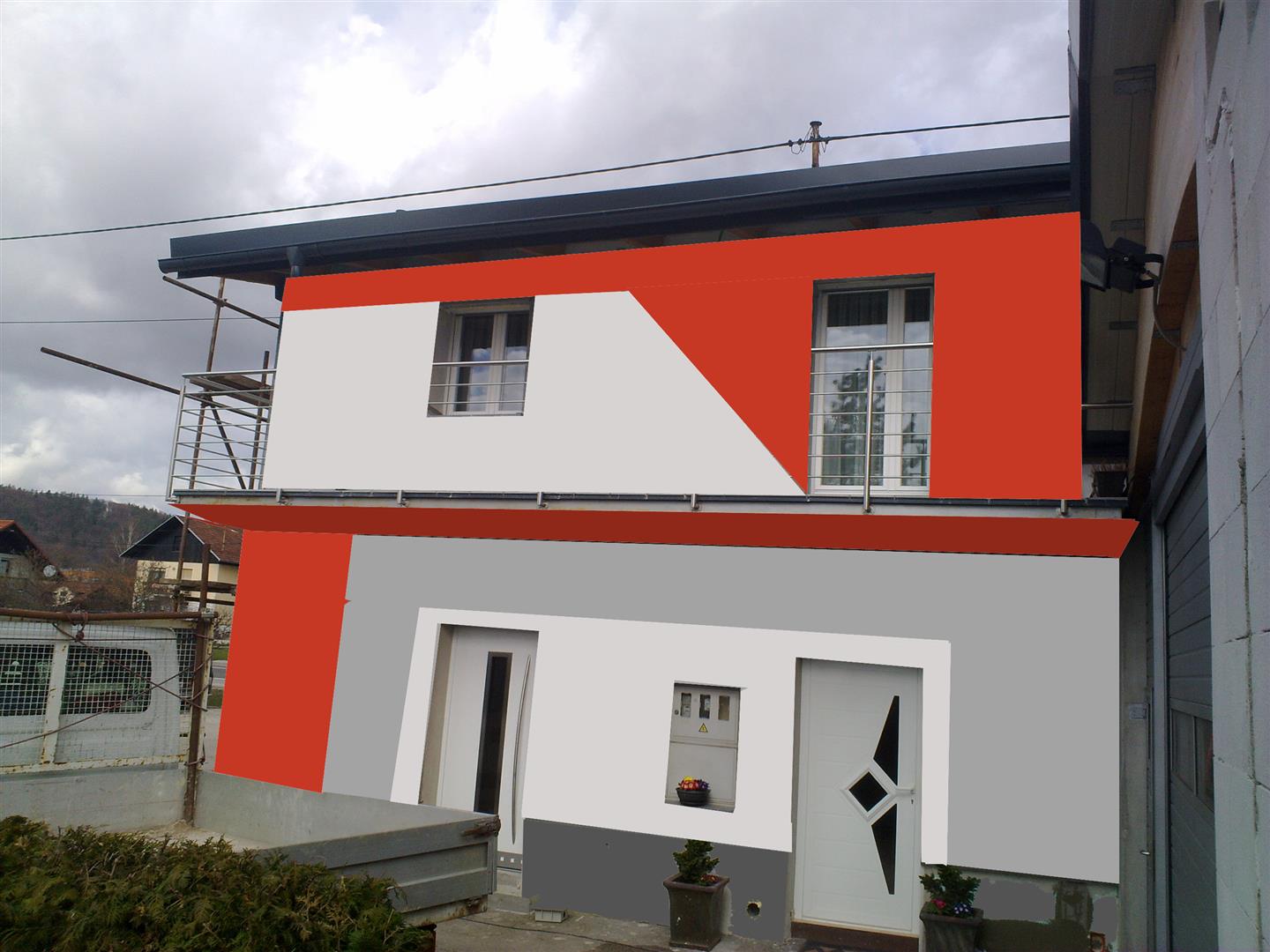 Zgodi se, da je kakšna videna fasada očitno neprimerna prostoru. Ali pa se zgodi, da je sosedova hiša izpadla ravno v takih barvah, da dobimo občutek, kot da so idejo ukradli nam izpred 4 let... Pa spet ne vemo, ali je prav, da jim sledimo ali nasprotujemo z vijolično ali oranžno fasadno barvo. Arhitektova dolžnost je, da soustvarja prostor, ki bo konec koncev tam ostal. Zato se zmeraj najprej potrudimo fasado izdelati brez uporabe barv. Ko določimo »razširitve balkonov« , ko se obe generaciji strinjata glede modernosti panoramske stene in ko vse prepričamo, da je tudi steklena ograja lahko lepa – šele takrat se začne razmišljati o barvah. Sledi zbor tipa in debeline izolacije, granulacija zaključnega sloja, kar pa so že tehnični podatki..